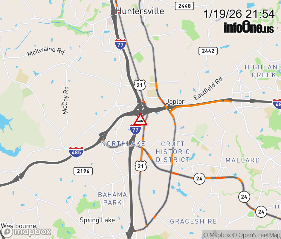 The right shoulder is closed near Exit 19 (I-485). ![]() |