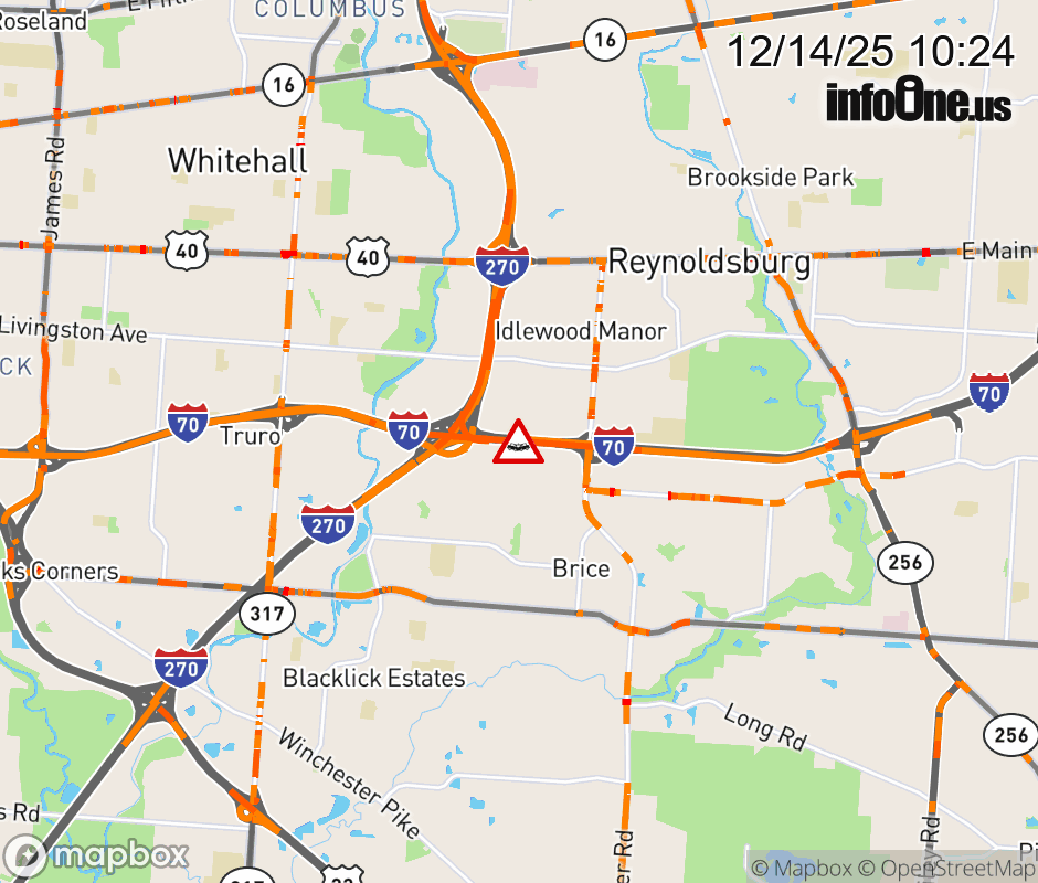 The right lane is blocked on I-70 East beyond I-270 (East Side), due to a crash. Updated: Sun 12/14/25 10:24 AM EST ![]() Updated: Sun 12/14/25 10:24 AM EST |