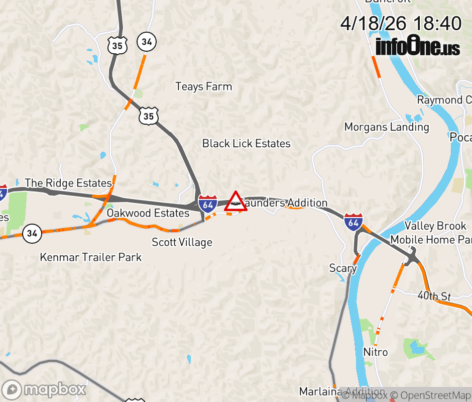 Location: I-64 at MM 41.0, WV Accident.