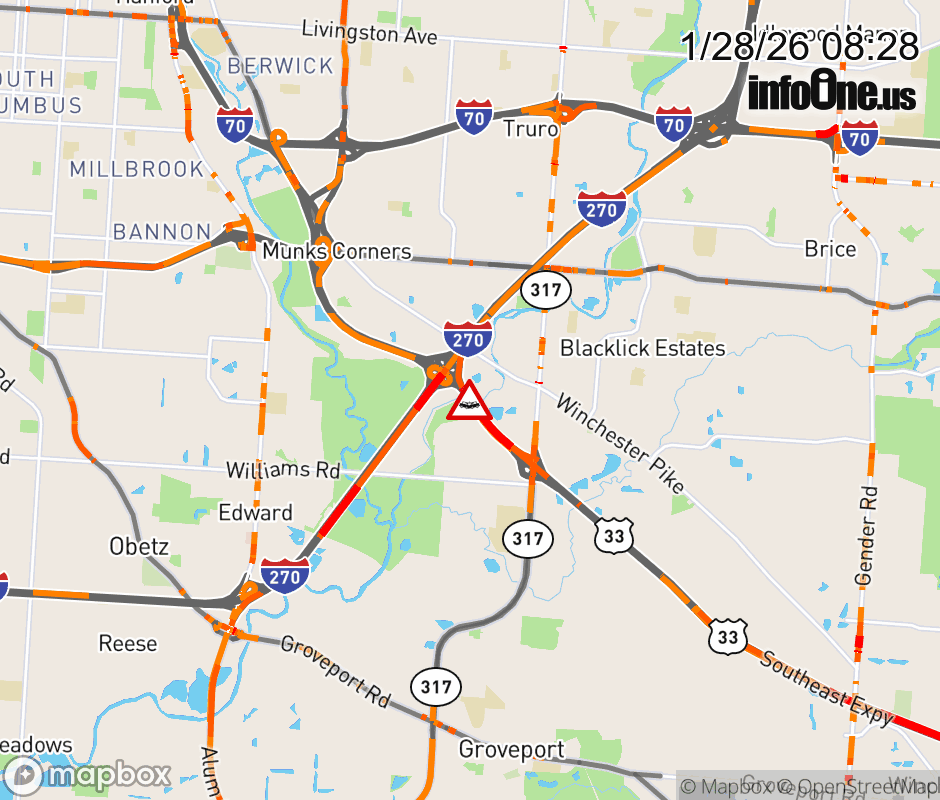 The right lane is closed on US-33 West at I-270 North, due to a crash. Updated: Wed 1/28/26 8:28 AM EST ![]() Updated: Wed 1/28/26 8:28 AM EST |