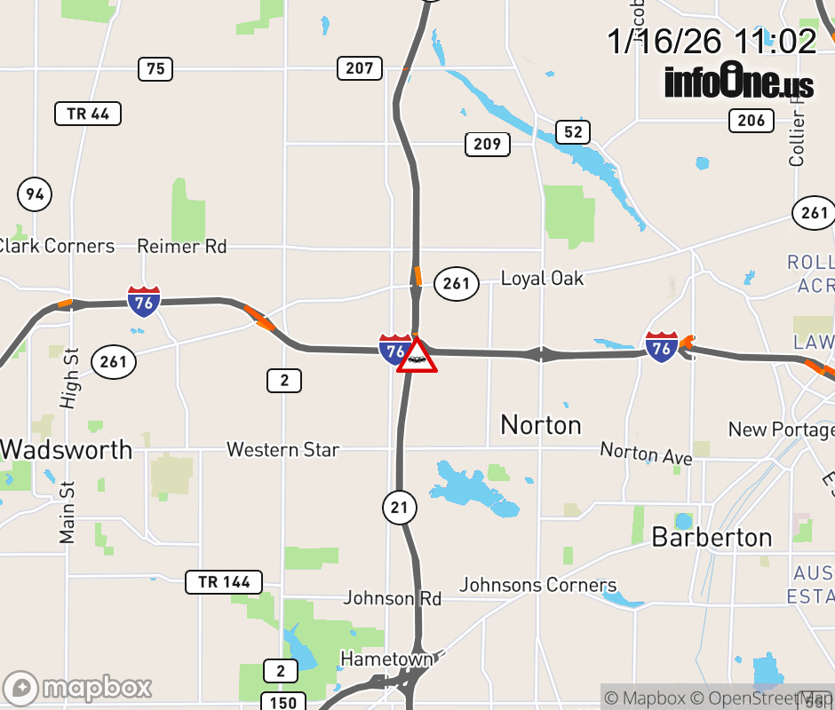 Expect lane closures on Ramp I-76/US-224 East to SR-21 North at I-76/US-224 East, due to a crash. ![]() |