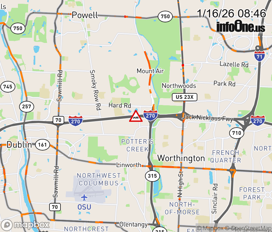 The right shoulder is blocked on I-270 West beyond SR-315 South, due to a disabled vehicle. ![]() |