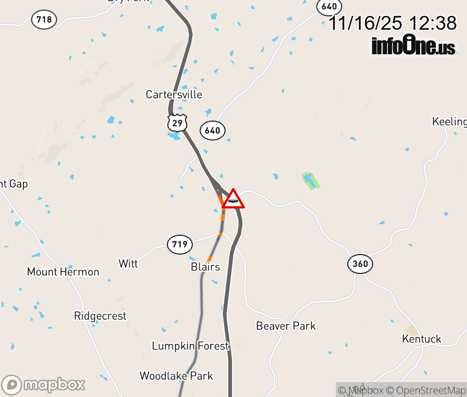 On Rt. 726 North in the County of Pittsylvania, in the vicinity of Danville Expy; Malmaison Rd; U S Highway No 29; Ramp Intersection, motorists can expect delays due to a vehicle crash. Lane closures exist. ![]() |
