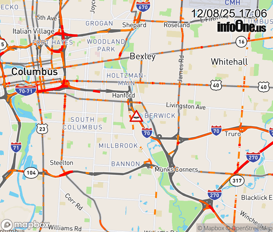 The center lane is blocked on I-70 East beyond Alum Creek Dr/Livingston Ave, due to a crash. ![]() |