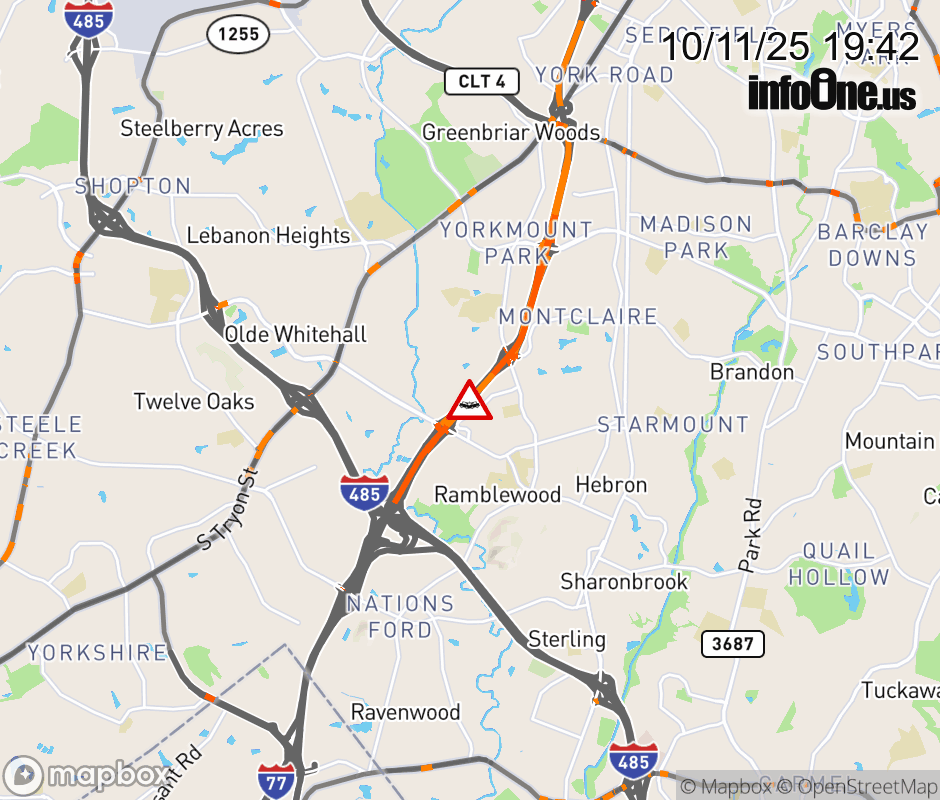 The two left lanes are closed past Exit (W. Arrowood Rd). Updated: Sat 10/11/25 7:42 PM EDT ![]() Updated: Sat 10/11/25 7:42 PM EDT |
