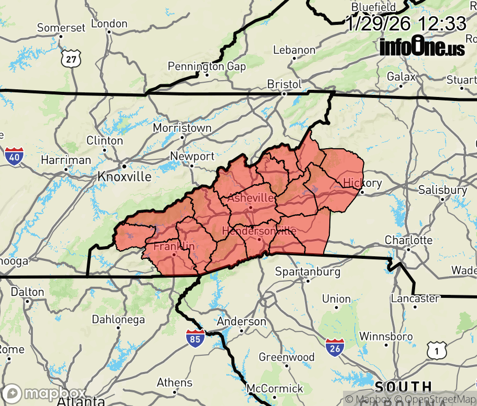 Canceled 1/29/26 9:54 PM Extreme Cold Watch issued January 29 at 12:31PM EST until February 1 at 1:00PM EST by NWS Greenville-Spartanburg SC * WHAT... Dangerously cold wind chills as low as 22 below possible. * WHERE... A portion of western North Carolina. * WHEN... From Saturday afternoon through Sunday afternoon. * IMPACTS... The dangerously cold wind chills as low as 20 below zero could cause frostbite on exposed skin in as little as 30 minutes. ![]() |
