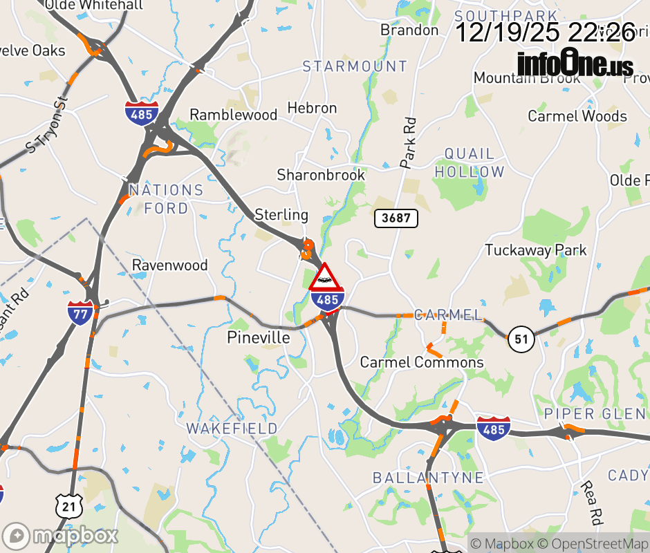 The left lane is closed at Exit 64 A (NC 51). Updated: Fri 12/19/25 10:26 PM EST ![]() Updated: Fri 12/19/25 10:26 PM EST |