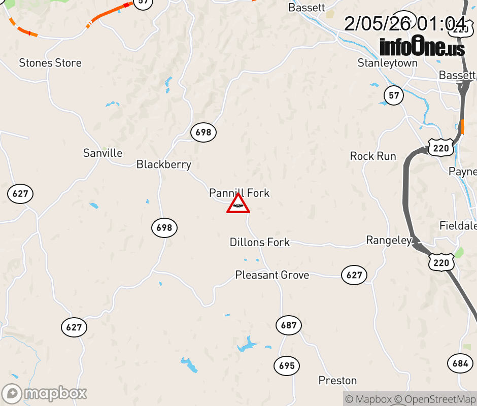 On Rt. 687 East in the County of Henry, in the vicinity of Jarrett Dr; Rt. 679N/S (Henry County), motorists can expect delays due to a tractor trailer crash. Lane closures exist. Updated: Thu 2/5/26 1:04 AM EST ![]() Updated: Thu 2/5/26 1:04 AM EST |