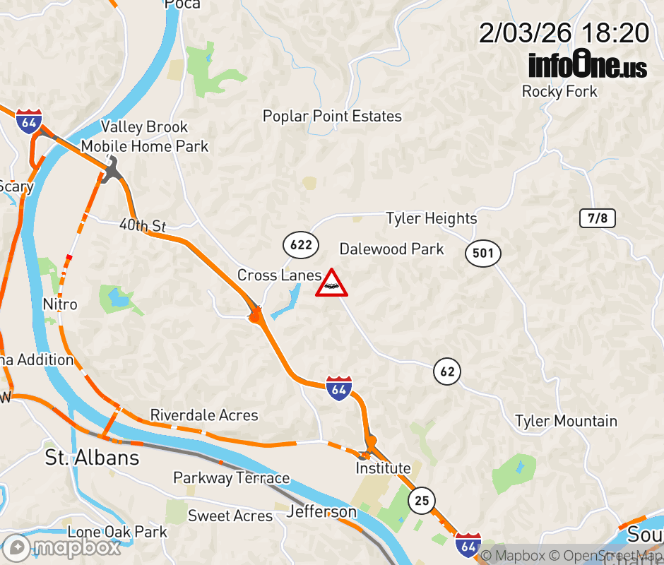 Vehicle Crash on WV-62 (Area of 5032 Big Tyler Rd) in Cross Lanes. ![]() |