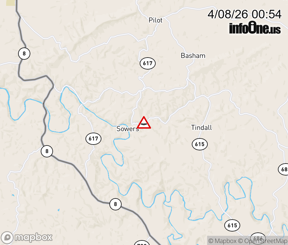 On Rt. 705 North in the County of Floyd, in the vicinity of Dobbins Hollow Rd; Lick Ridge Rd NE; Otey Rd; Otey Rd NE; Rt. 616N/S (Floyd County), motorists can expect delays due to a vehicle crash. Lane closures exist. Updated: Wed 4/8/26 12:54 AM EDT ![]() Updated: Wed 4/8/26 12:54 AM EDT |
