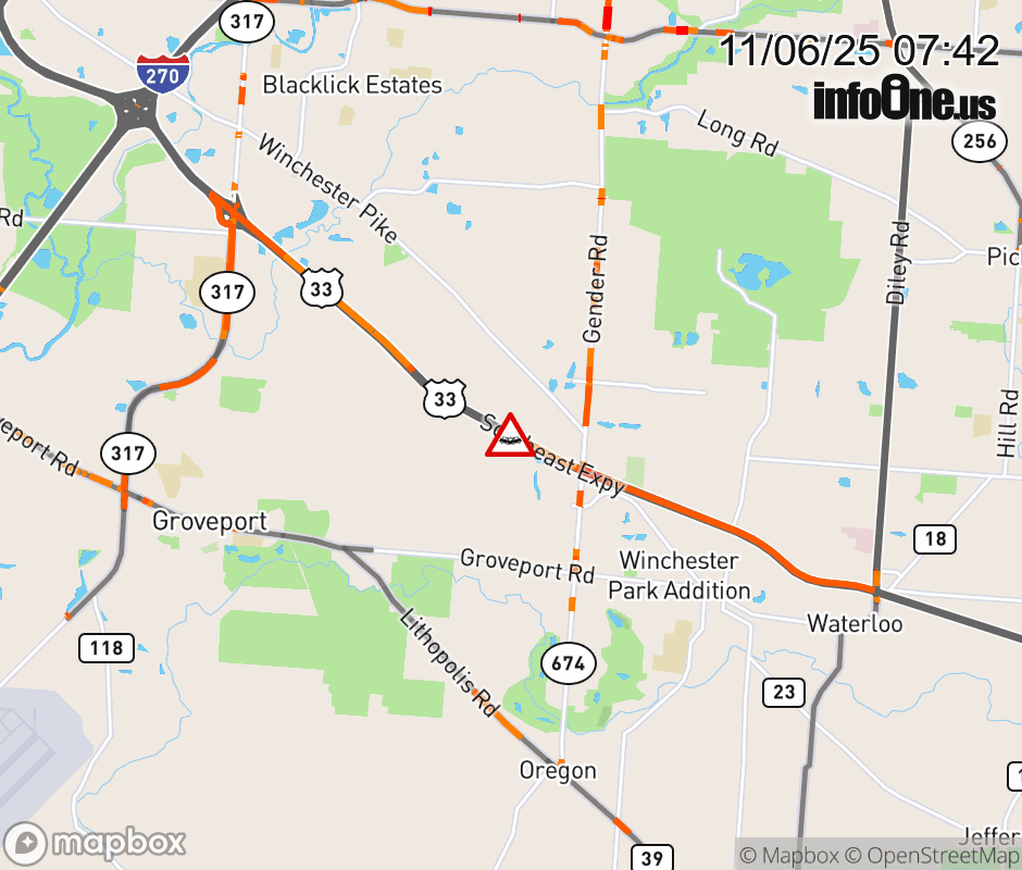 The left shoulder is blocked on US-33 West beyond SR-674/Gender Rd, due to a crash. ![]() |