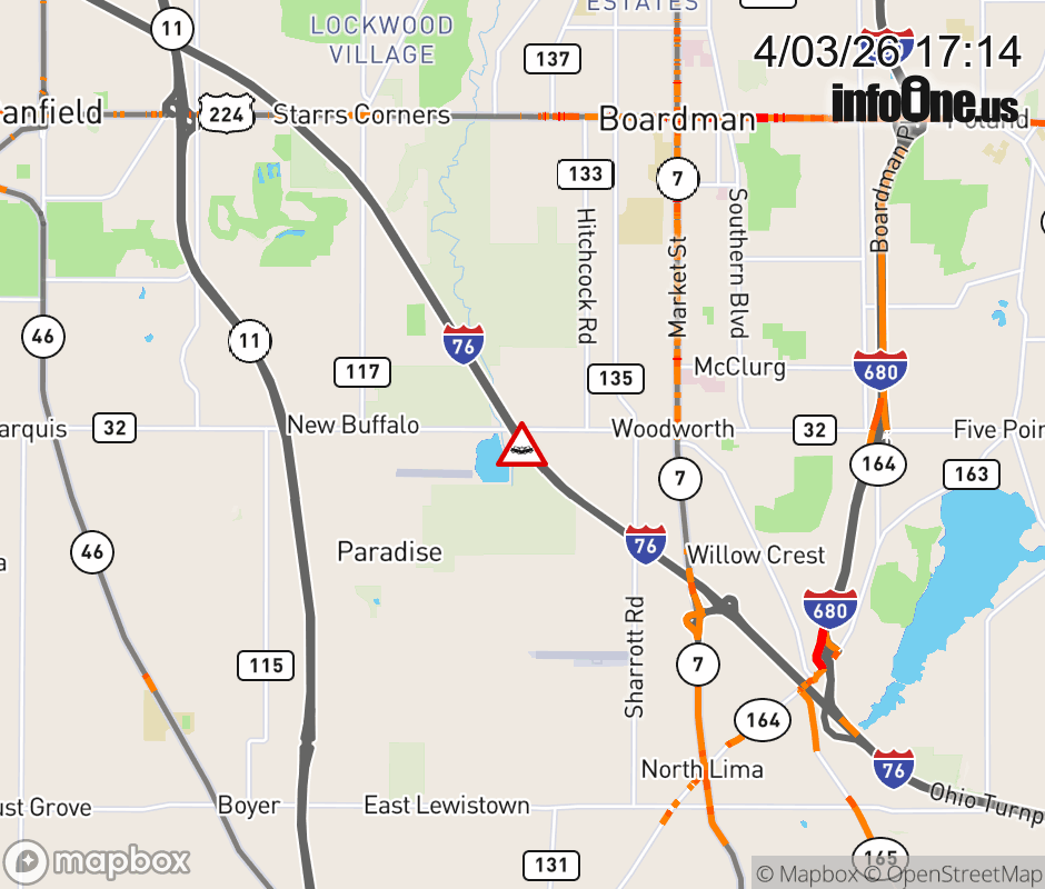 Expect lane closures on I-76 East (Ohio Turnpike) beyond I-76/80, due to a crash. ![]() |
