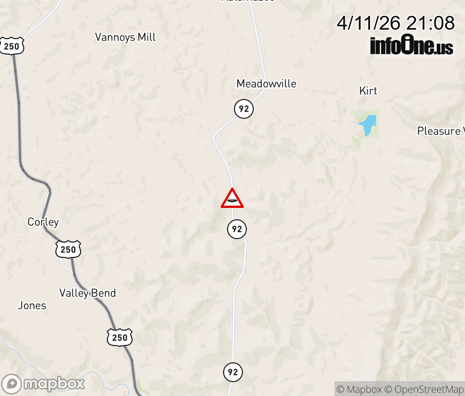 Vehicle Crash on WV-92 at Mud Gut Road. The eastbound road is closed. The westbound road is closed. ![]() |