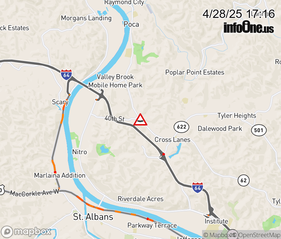 Canceled 4/28/25 5:22 PM Location: WV-62 at MM 7.79, WV Accident.