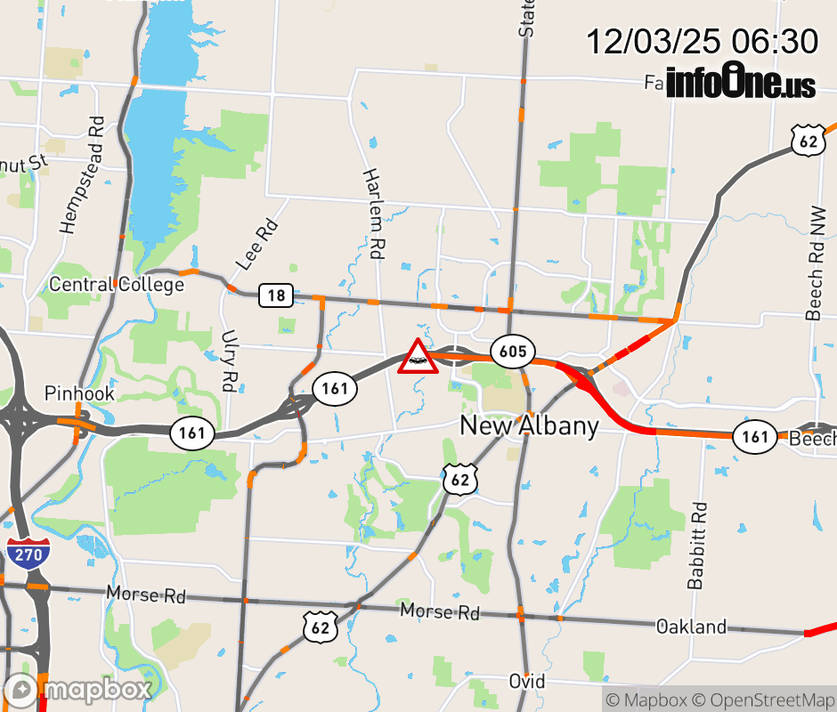 The center lane is blocked on SR-161 East at New Albany Rd, due to a crash. ![]() |
