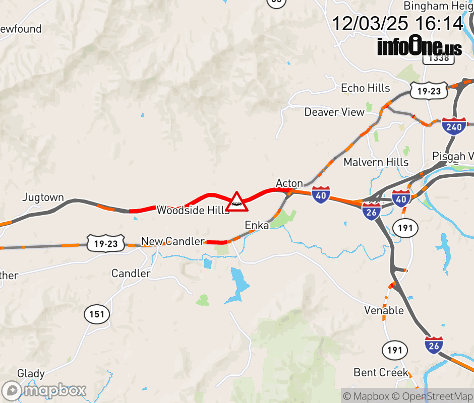 The right lane is closed after Exit 44, US 19 (Smokey Park Hwy). Updated: Wed 12/3/25 4:14 PM EST ![]() Updated: Wed 12/3/25 4:14 PM EST |