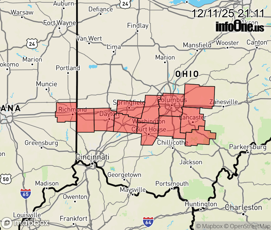 Canceled 12/12/25 2:26 AM Winter Storm Watch issued December 11 at 9:09PM EST until December 14 at 7:00AM EST by NWS Wilmington OH * WHAT... Heavy snow possible. Total snow accumulations between 3 and 5 inches possible. * WHERE... Portions of east central Indiana and central and west central Ohio. * WHEN... From Saturday morning through Sunday morning. * IMPACTS... Travel could be very difficult. ![]() |
