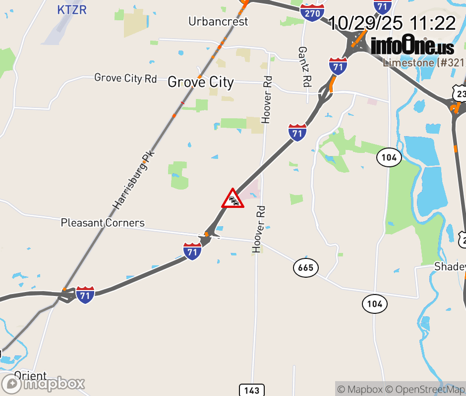 Expect lane closures on I-71 North beyond SR-665/London - Groveport Rd, due to debris on roadway. ![]() |