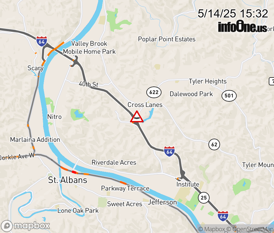 In Kanawha County there is a Vehicle Crash on WV-622 at Mile Marker 2.22. 322 Goff Mountain Road. Current lanes impacted: RIGHT LANE. Updated: Wed 5/14/25 3:32 PM EDT ![]() Updated: Wed 5/14/25 3:32 PM EDT |