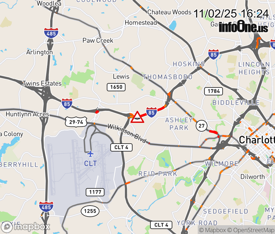 The three right lanes are closed near Exit 33 (Billy Graham pkwy). ![]() Updated: Sun 11/2/25 4:24 PM EST |