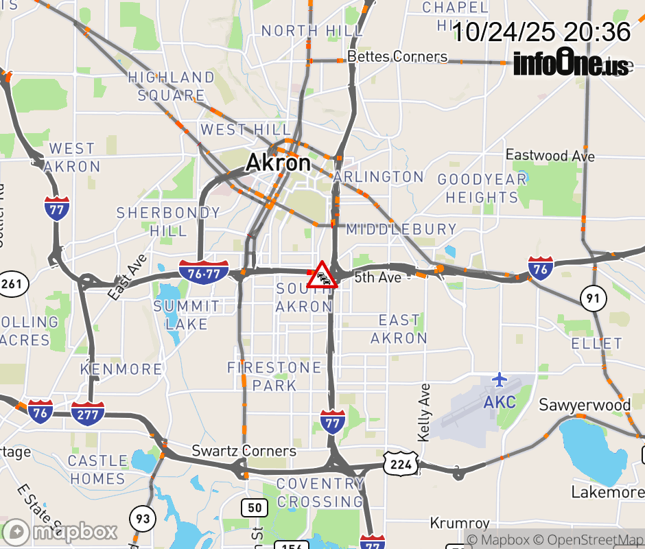 The left lane is closed on I-76 East at I-76 East/I-77 South, due to repairs/maintenance. Updated: Fri 10/24/25 8:36 PM EDT ![]() Updated: Fri 10/24/25 8:36 PM EDT |