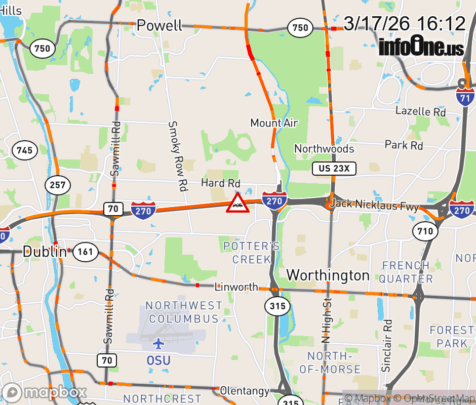 The left lane is blocked on I-270 West beyond SR-315 South, due to a disabled vehicle. ![]() |