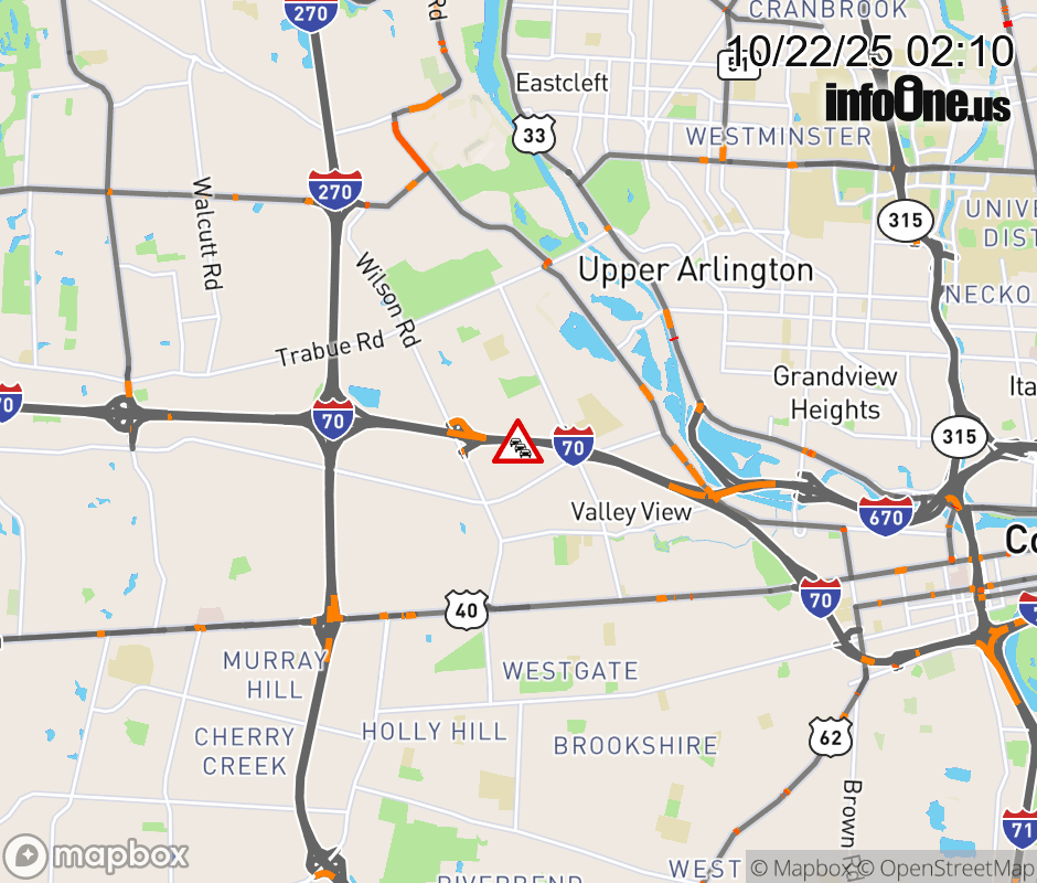 The 2 left lanes are blocked on I-70 East beyond Wilson Rd, due to repairs/maintenance. Updated: Wed 10/22/25 2:10 AM EDT ![]() Updated: Wed 10/22/25 2:10 AM EDT |