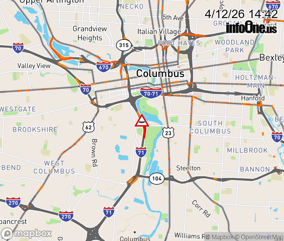The 2 right lanes are blocked on I-71 North beyond Greenlawn Ave, due to a crash. Updated: Sun 4/12/26 2:42 PM EDT ![]() Updated: Sun 4/12/26 2:42 PM EDT |