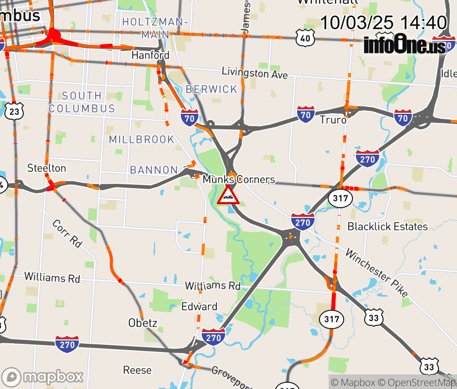 The right shoulder is blocked on US-33 East beyond SR-104/Refugee Rd, due to a disabled vehicle. ![]() |