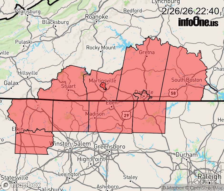 Canceled 2/27/26 5:00 AM Special Weather Statement issued February 26 at 10:38PM EST by NWS Blacksburg VA Areas of dense fog will continue to develop across the VA/NC border this evening, with KDAN and KMTV already having reported 1/4 and 1/2 mile visibility respectively this evening. If you encounter dense fog while driving, turn on your low beam headlights, slow down, and keep your distance from other vehicles. ![]() |