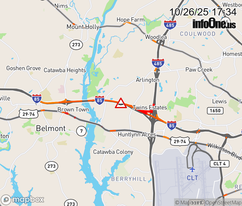 The right shoulder is closed past Exit 29 (I-485) ![]() |
