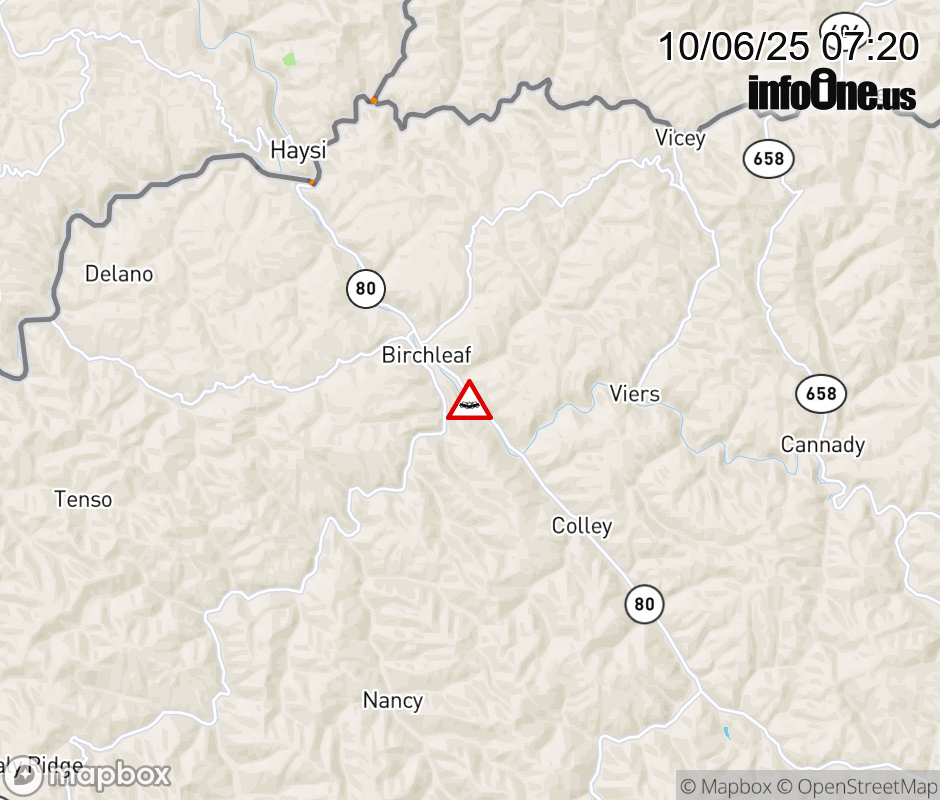 On VA-80 North in the County of Dickenson, in the vicinity of Tildy Br; Rt. 827E/W (Dickenson County), motorists can expect delays due to a vehicle crash. Lane closures exist. Updated: Mon 10/6/25 7:20 AM EDT ![]() Updated: Mon 10/6/25 7:20 AM EDT |