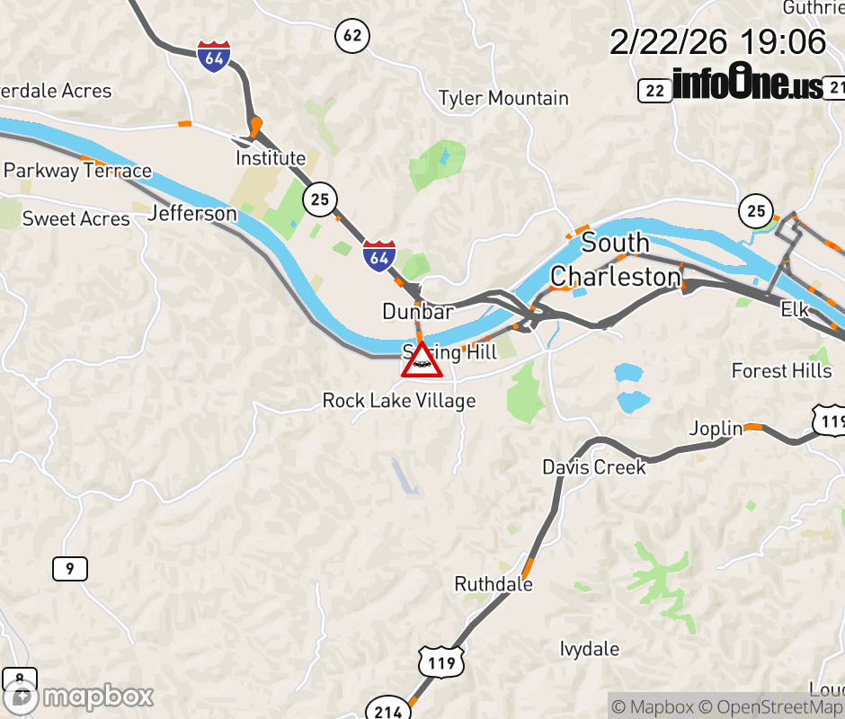 Vehicle Crash on US-60 (MacCorkle Ave SW) & Dunbar Bridge in South Charleston. Updated: Sun 2/22/26 7:06 PM EST ![]() Updated: Sun 2/22/26 7:06 PM EST |