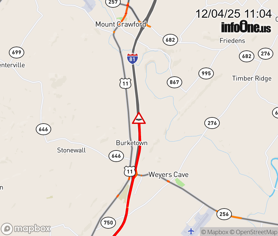 On I-81 North at mile marker 237 in the County of Rockingham, motorists can expect delays due to a tractor trailer crash. Traffic backups are approximately 2.0 miles. Updated: Thu 12/4/25 11:04 AM EST ![]() Updated: Thu 12/4/25 11:04 AM EST |