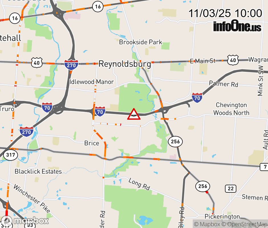 The right shoulder is blocked on I-70 West beyond SR-256, due to a crash. ![]() |