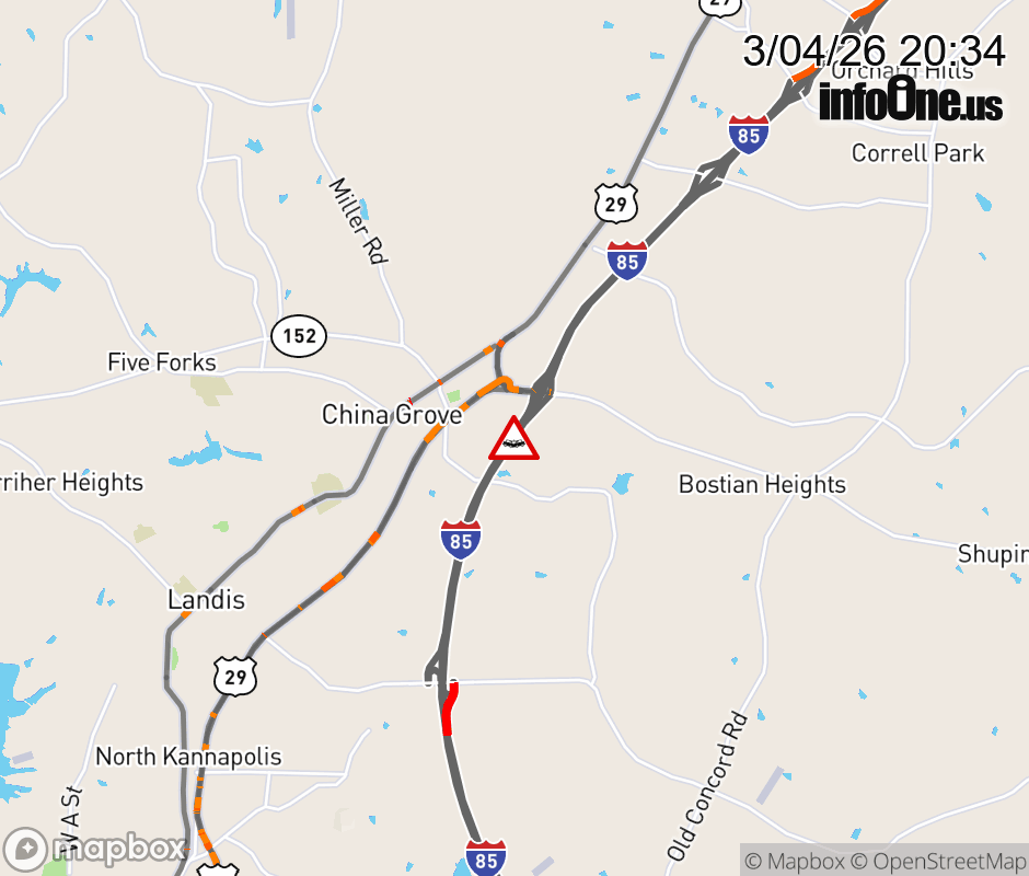The right lane is closed before Exit 68 (NC 152). ![]() |