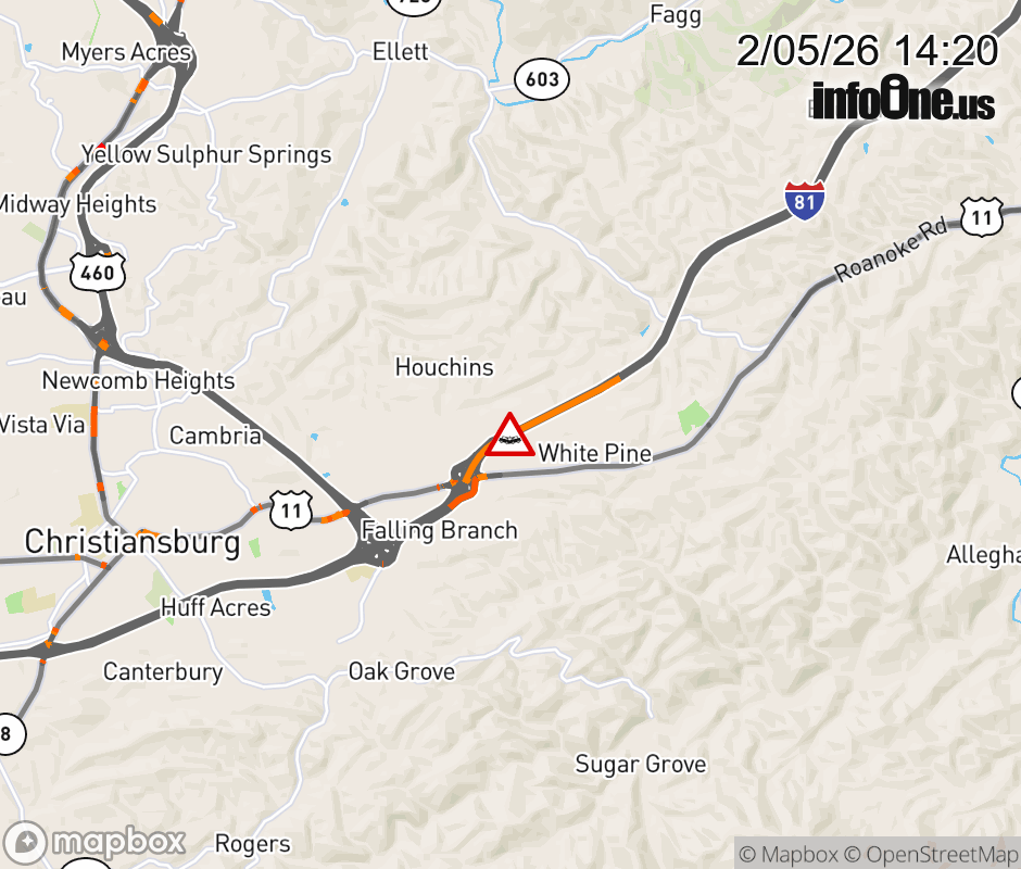 On I-81 at mile marker 119 in the County of Montgomery, motorists can expect delays due to a tractor trailer crash. The north left shoulder is closed. Updated: Thu 2/5/26 2:20 PM EST ![]() Updated: Thu 2/5/26 2:20 PM EST |