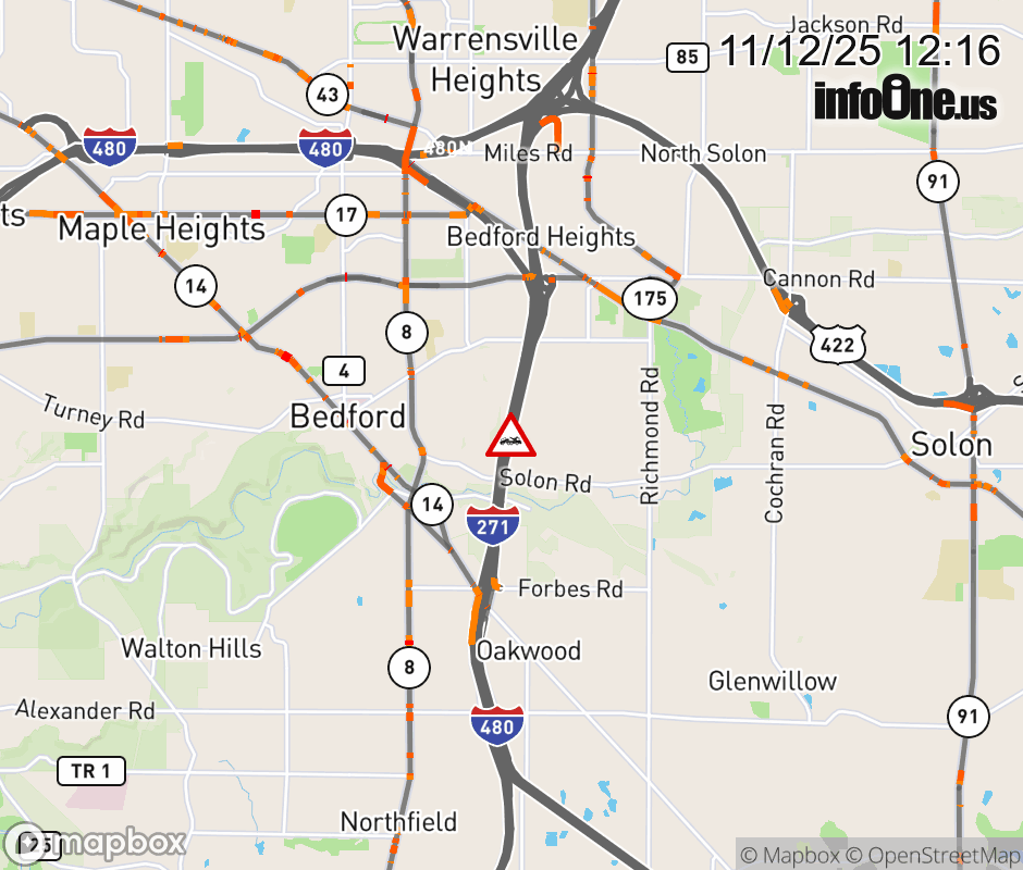 The right shoulder is blocked on I-271/I-480 North beyond SR-14, due to a disabled vehicle. ![]() |