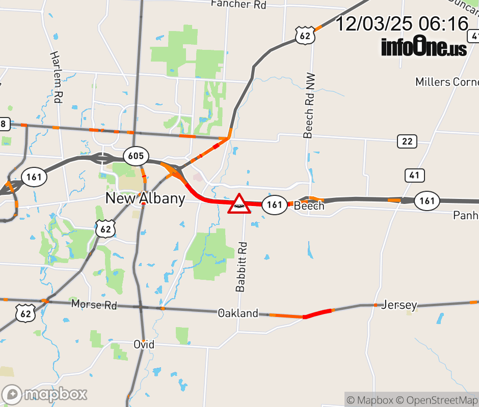 The right shoulder is blocked on SR-161 East beyond US-62, due to a crash. ![]() |