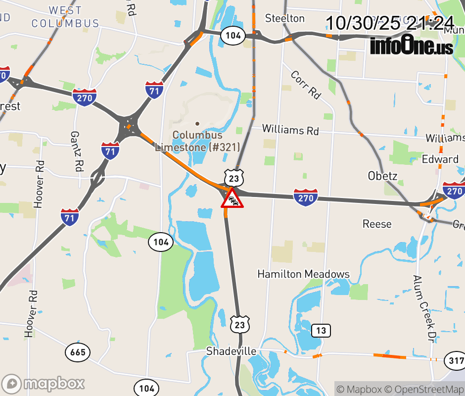 Ramp US-23 North to I-270 East CLOSED because of repairs/maintenance. ![]() |