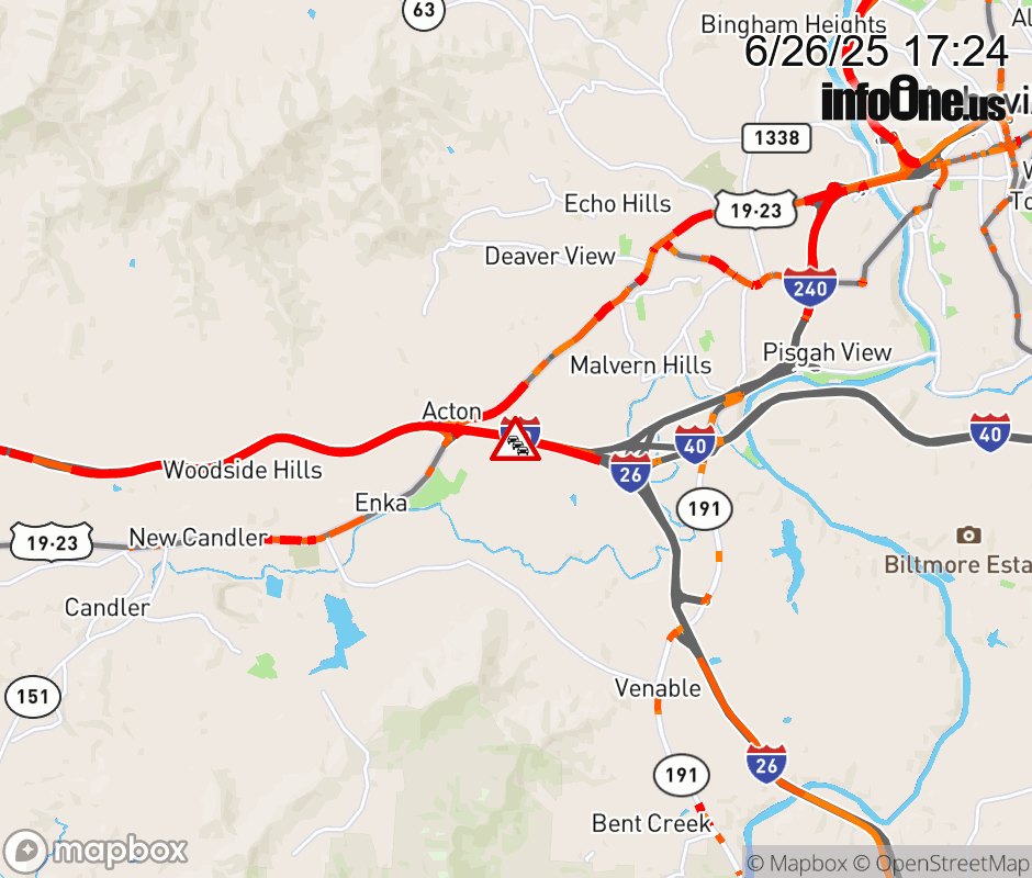The right lanes are closed after Exit 44, US 19/23 (Smokey Park Highway). Updated: Thu 6/26/25 5:24 PM EDT ![]() Updated: Thu 6/26/25 5:24 PM EDT |