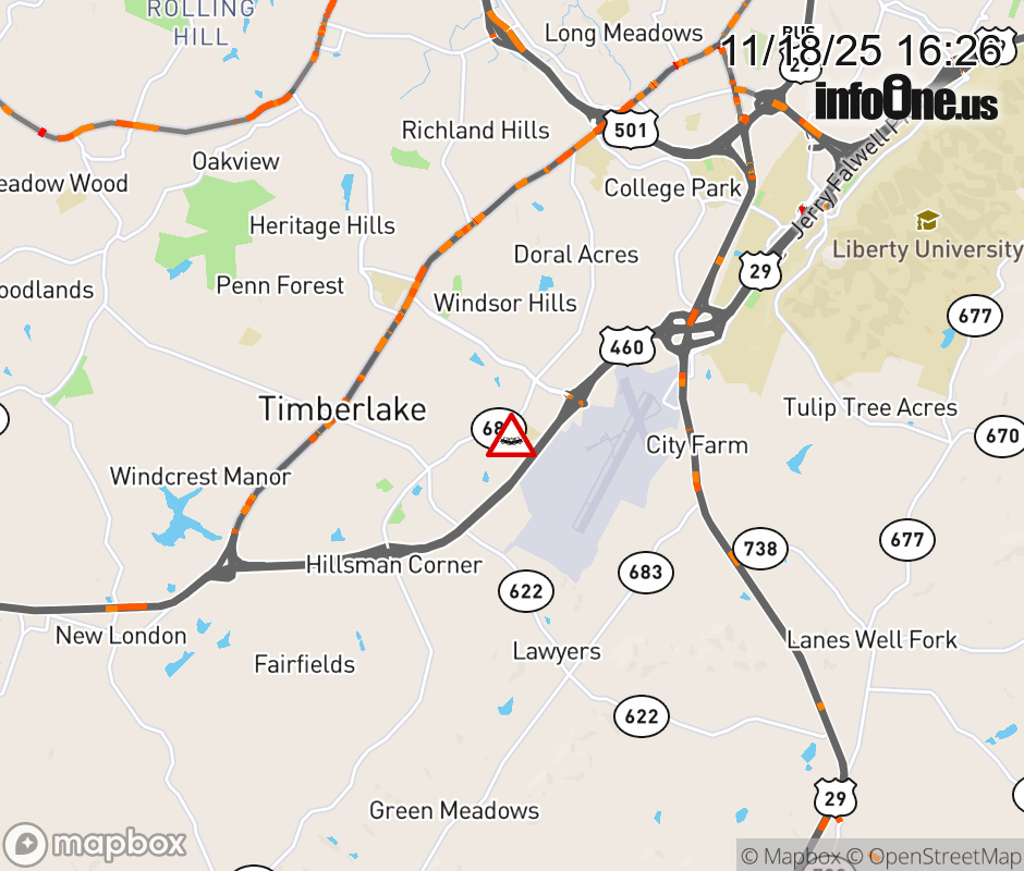 On Rt. 9077 East in the County of Campbell, in the vicinity of Leesville Rd; Lilac Ln; Dead End, motorists can expect delays due to a vehicle crash. Lane closures exist. Updated: Tue 11/18/25 4:26 PM EST ![]() |