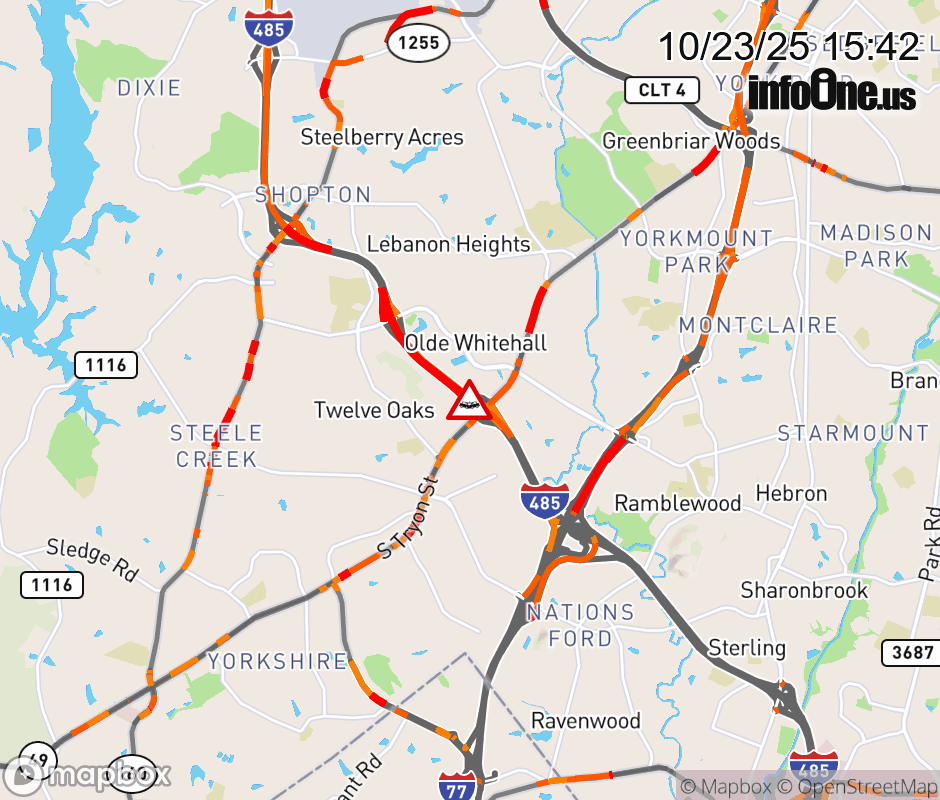 The right shoulder is closed prior to Exit 1 (South Tryon Street). Updated: Thu 10/23/25 3:42 PM EDT ![]() Updated: Thu 10/23/25 3:42 PM EDT |