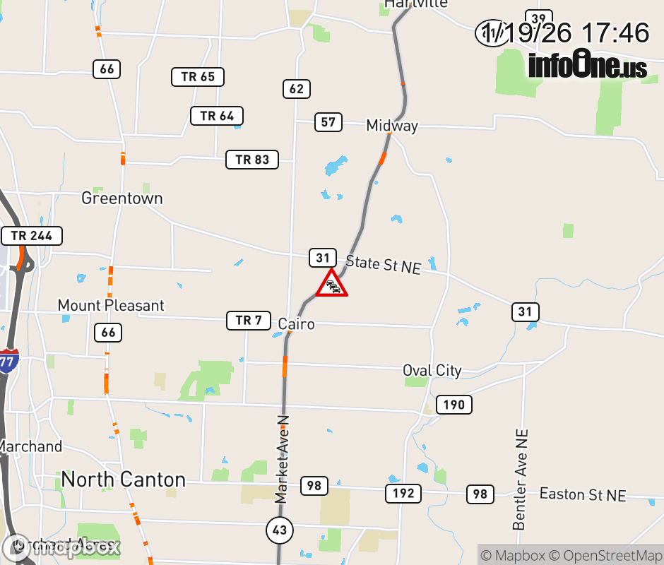 Canceled 1/19/26 7:40 PM Location: SR-43 North N, OH Traffic hazard.