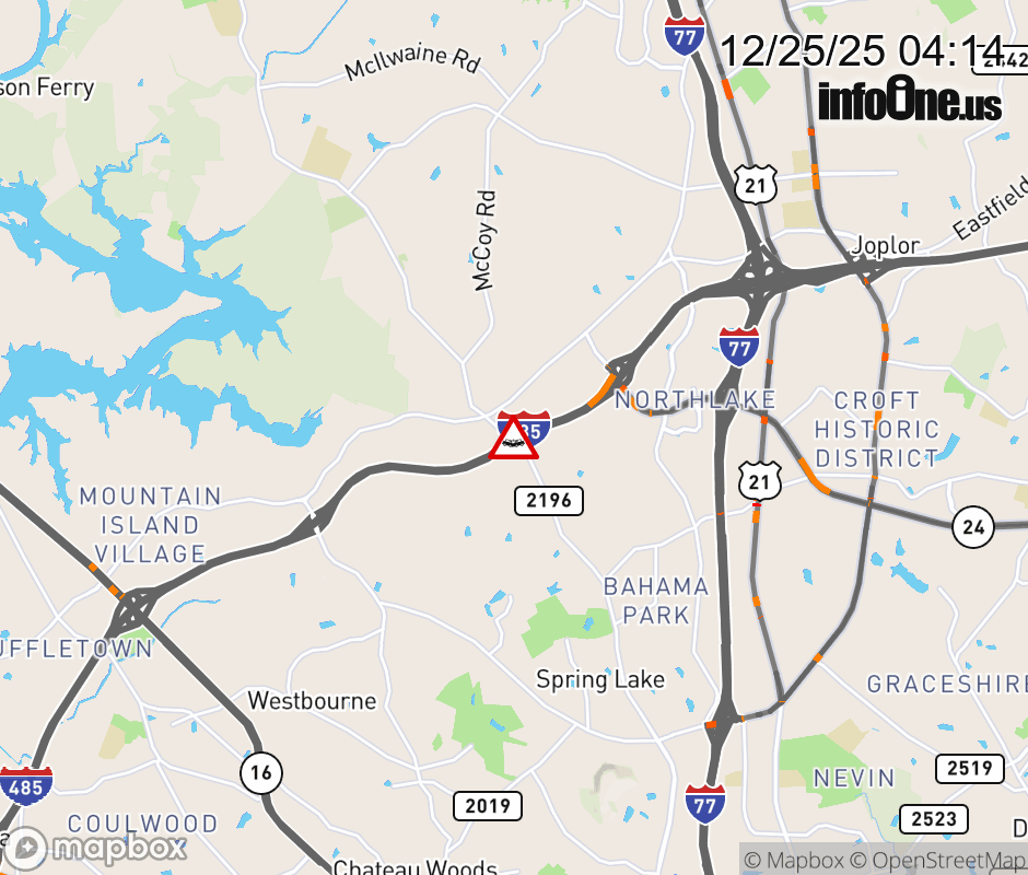 The left lane is closed past Exit 21 (W W.T. Harris Blvd). Updated: Thu 12/25/25 4:14 AM EST ![]() Updated: Thu 12/25/25 4:14 AM EST |