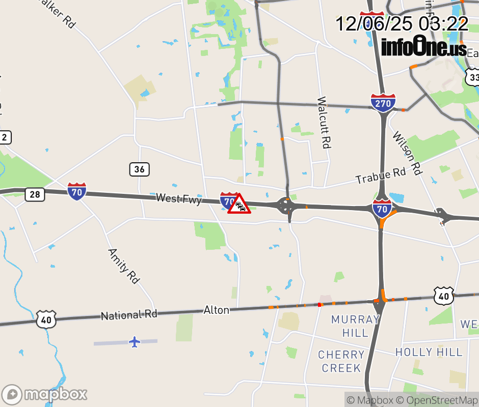 The left lane is blocked on I-70 East beyond SR-142/Plain City, due to repairs/maintenance. Updated: Sat 12/6/25 3:22 AM EST ![]() Updated: Sat 12/6/25 3:22 AM EST |