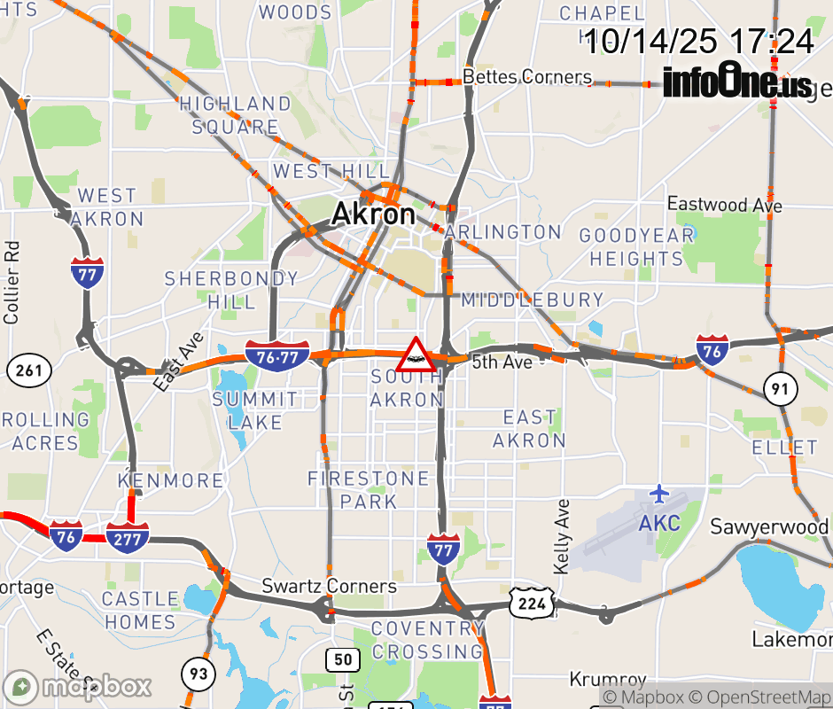The left lane is blocked on I-76 West at I-77/I-76, due to a crash. Updated: Tue 10/14/25 5:24 PM EDT ![]() Updated: Tue 10/14/25 5:24 PM EDT |