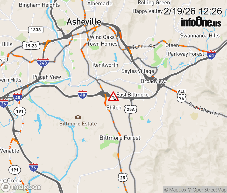 The right lane is closed before Exit 50-B, US 25 (Hendersonville Road). ![]() |