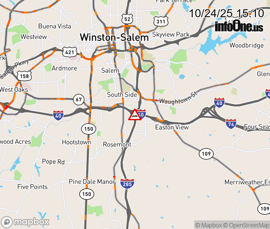 The right lane is closed at Exit 107A (I-40). ![]() |