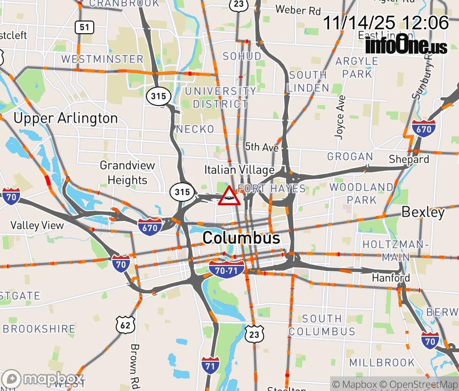 The right shoulder is blocked on I-670 West at Neil Ave/Goodale St, due to a crash. Updated: Fri 11/14/25 12:06 PM EST ![]() Updated: Fri 11/14/25 12:06 PM EST |